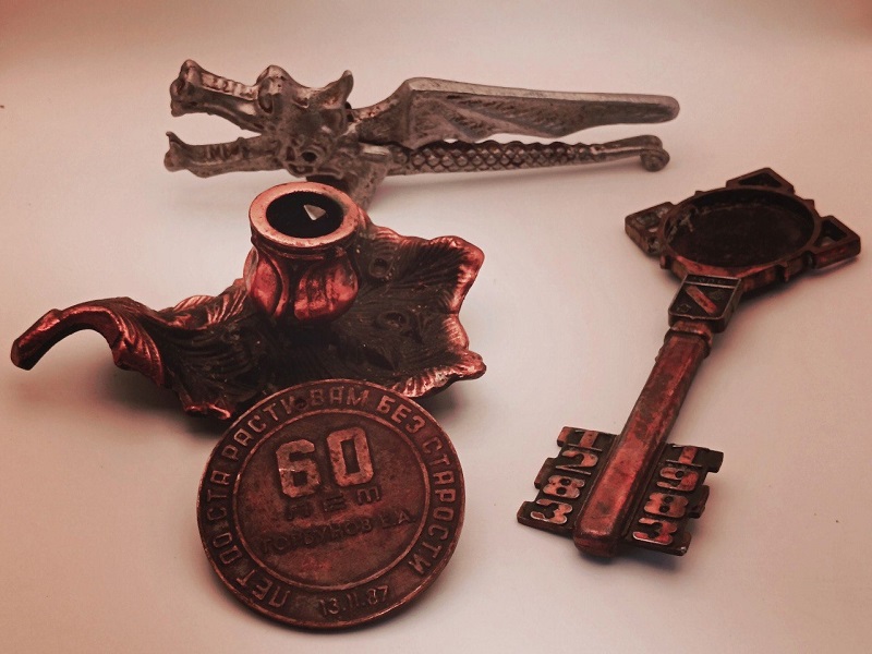 Не менее интересен металлический орехокол в виде дракона, который был изготовлен на Пензенском заводе вычислительных электронных машин в 1970-1980-х годах. Этот предмет объединяет в себе практичность и характерный советский стиль.