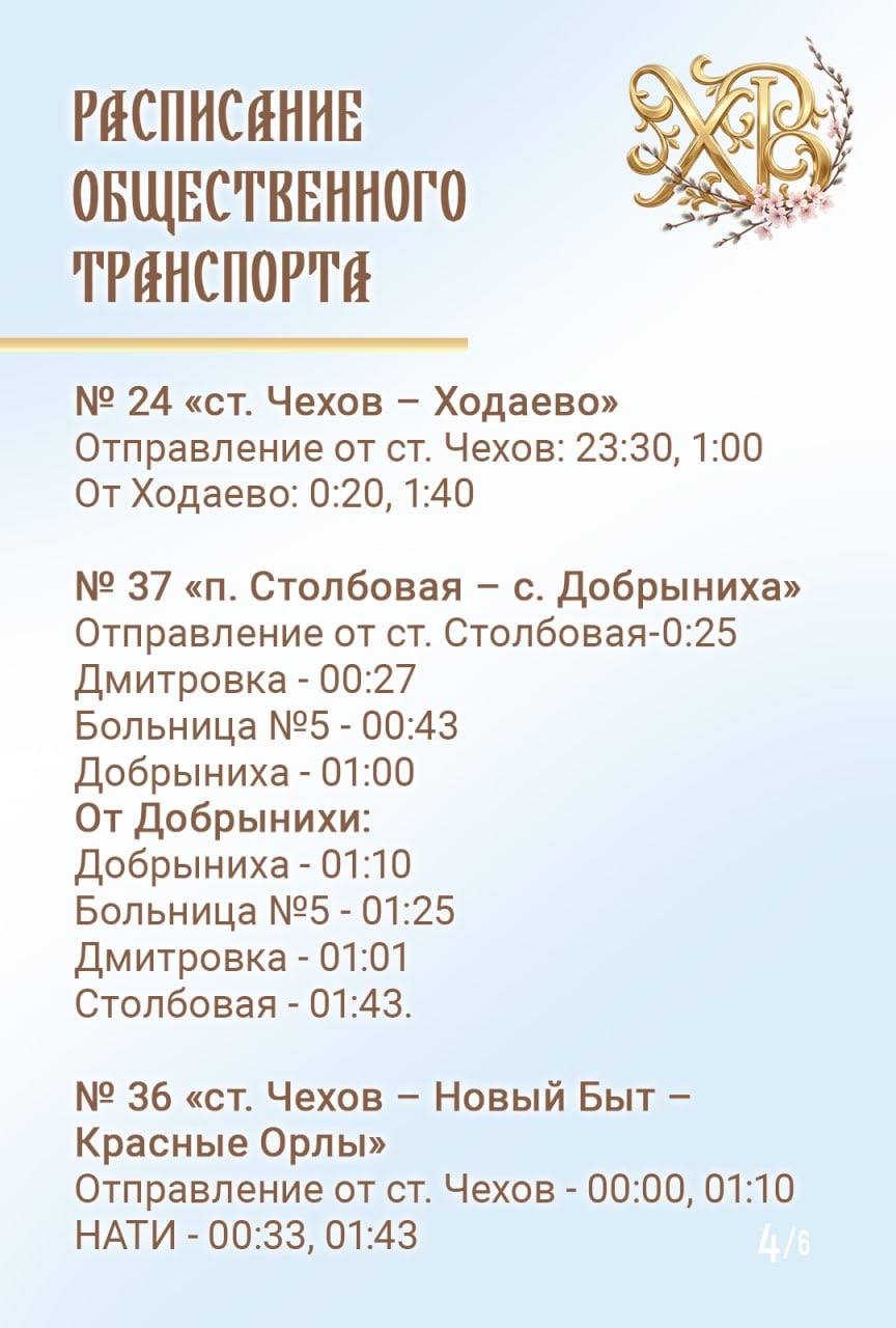 В предстоящие выходные православные будут праздновать Светлое Христово Воскресение, или Пасху. Жители и гости муниципального округа Чехов смогут присоединиться к торжествам, посетив храмы Чеховского благочиния.