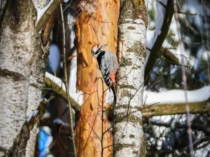 В Алексеевском лесопарке (территория «Лосиный остров») фотографу посчастливилось запечатлеть белоспинного дятла. Эта птица — редкий гость в Подмосковье: вид занесен в Красную книгу Московской области.