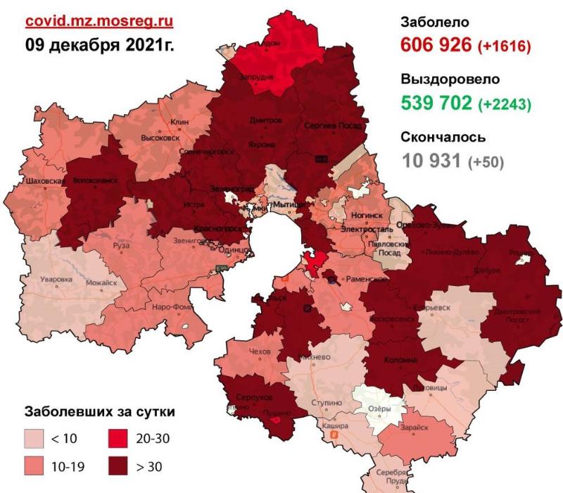 Всего на данный момент в Московской области выявлено 606 926 случаев заболевания коронавирусной инфекцией. Скончался 10 931 человек. Выздоровели и выписались 539 702 человека.