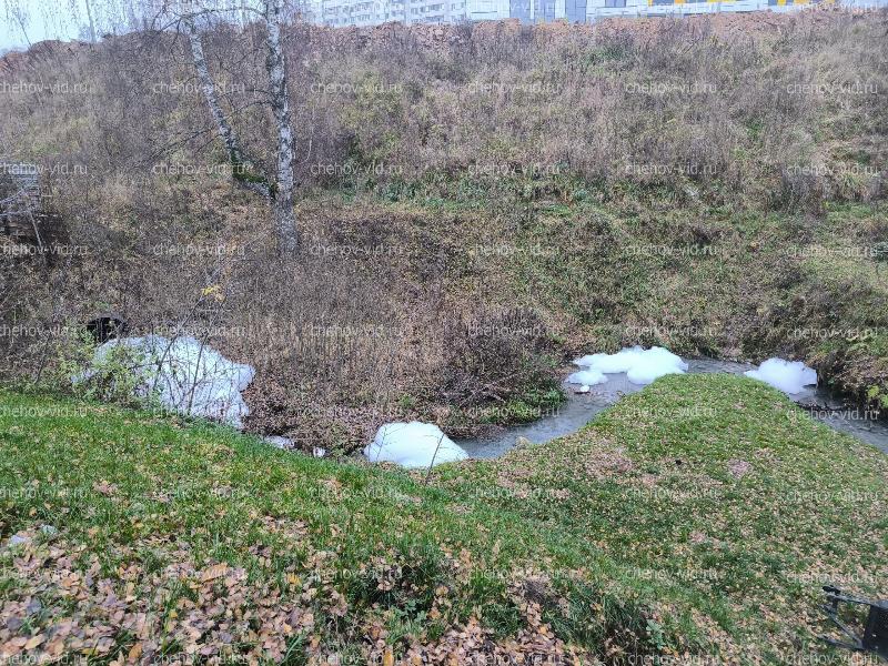 Как стало известно «Чехов Вид», практически ежедневно, особенно по утрам, с предприятия происходит слив неизвестных веществ, которые образуют густую, высокую пену с явным химическим запахом, неспеша плывущую от ж/д переезда вдоль ул. Апрелевской.