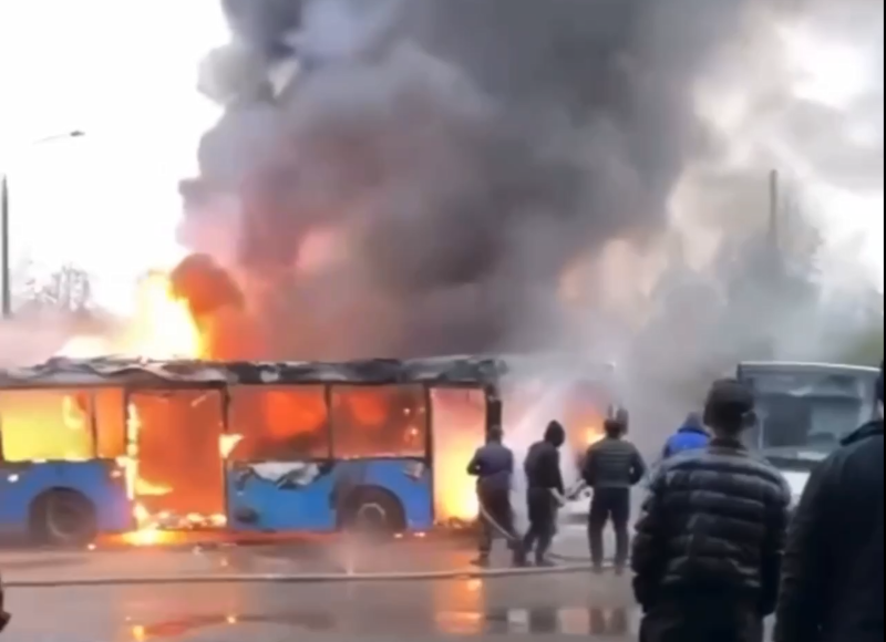 По словам очевидцев, утром водитель сел в один из автобусов, чтобы выйти на маршрут, но не смог завести из-за технической неисправности. Пока искали ремонтников, транспорт задымился, а затем полыхнул. Огонь перекинулся на стоящие рядом автобуса.