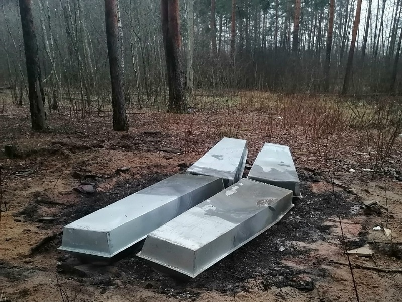 На территории погоста были обнаружены четыре пустых цинковых гроба, на которых видны явные следы попытки поджога.
