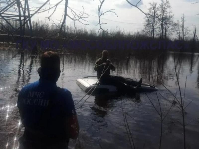 В СНТ «Фрязино» (городской округ Электросталь) автомобиль унесло течением реки Волхонка. На крыше машины находился пожилой мужчина — его жизнь была под угрозой.
