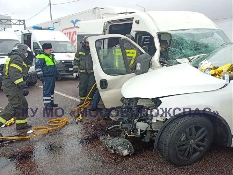 На 117-м километре федеральной трассы М-4 «Дон», в районе городского округа Кашира, произошло столкновение легкового автомобиля Volkswagen Touareg и пассажирского Fiat Ducato.