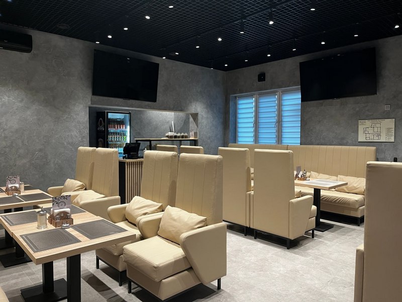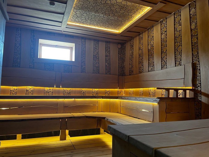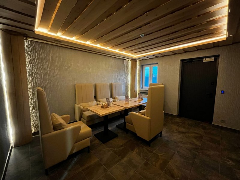 На территории комплекса действует своя кухня, где посетителям предлагают горячие блюда, напитки, чай на травах и лёгкие закуски. Отдельно оборудована VIP-комната, которую можно забронировать для компании.