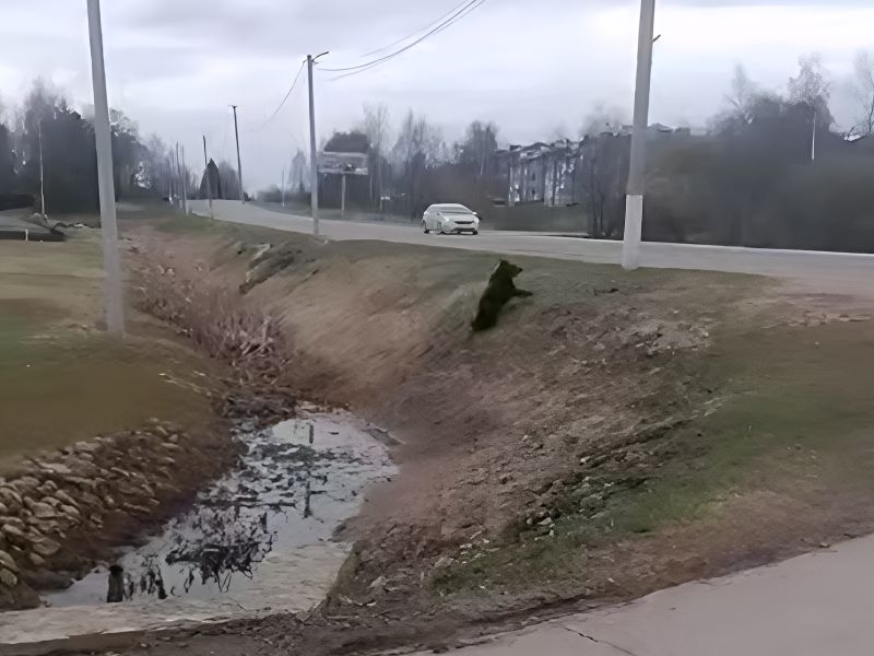 Ролик опубликовал местный паблик. Видно, как косолапый стремительно пересекает дорогу перед остановившимися автомобилями, а затем исчезает в зарослях. Судя по кадрам, медведь не взрослый и не упитанным, но при этом полон сил и энергии.