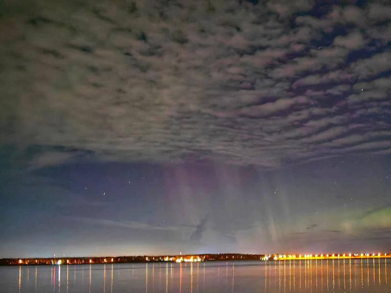 Красивейшее зелёно-фиолетовое небо этой ночью в очередной раз распростерлось в Приозерске, Выборге, Бокситогорске и даже в Свердловской области