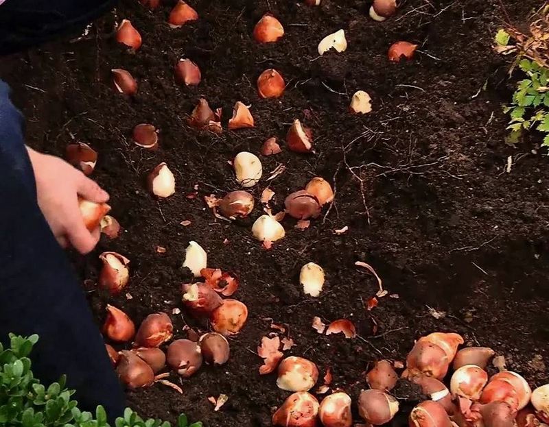 Расстояние между растениями должно быть 7-15 см, между рядами – 20-30 см. Сажать нужно только в сухую погоду и не поливать после посадки! Иначе луковицы могут проснуться и тронуться в рост.