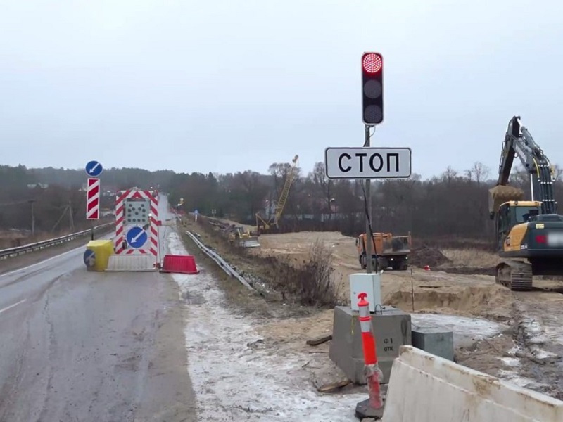 Ремонтные мероприятия развернулись на участке трассы между д. Коровино и мкр. Ровки. Чтобы обеспечить бесперебойное движение транспорта во время проведения работ, был возведен временный объездной мост.
