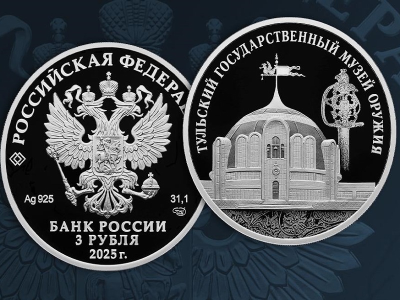 Центральный банк представил к выпуску особенную серебряную монету номиналом 3 рубля, посвященную Тульскому государственному музею оружия.