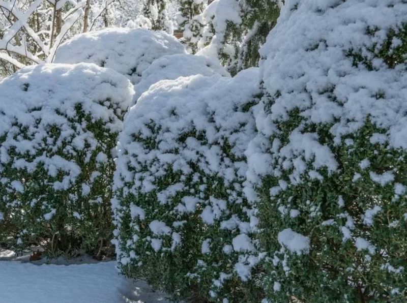 Молодые кустики укрываются по принципу «домика»: вокруг растения ставится конус из лапника или материал, натянутый на конусообразный каркас. Взрослые растения (в том числе и с фигурной обрезкой) полностью накрываются спанбондом или мешковиной.