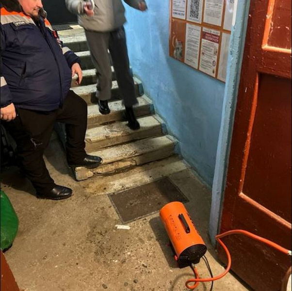 Когда стало понятно, что работы на теплосетях и котельной могут затянуться, в подъездах многоквартирных домов коммунальщики начали устанавливать тепловые пушки.