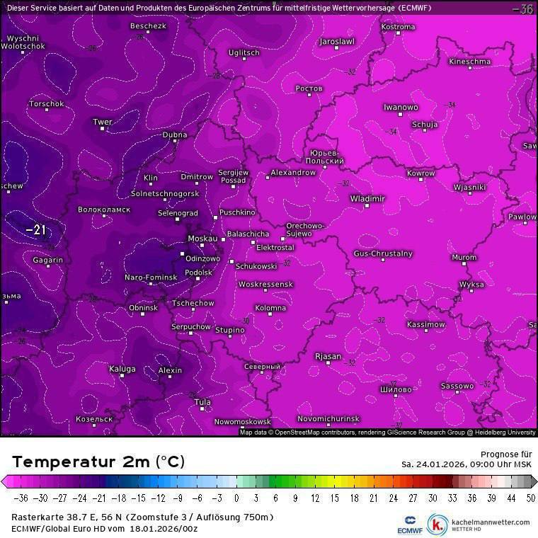 Сибирский антициклон начнет бушевать в Москве и Подмосковье с четверга, 22 января и до воскресенья, 25 января.. Синоптики прогнозируют, что температура воздуха будет ниже нормы на 10-15 градусов. Ночью возможны морозы до -36.