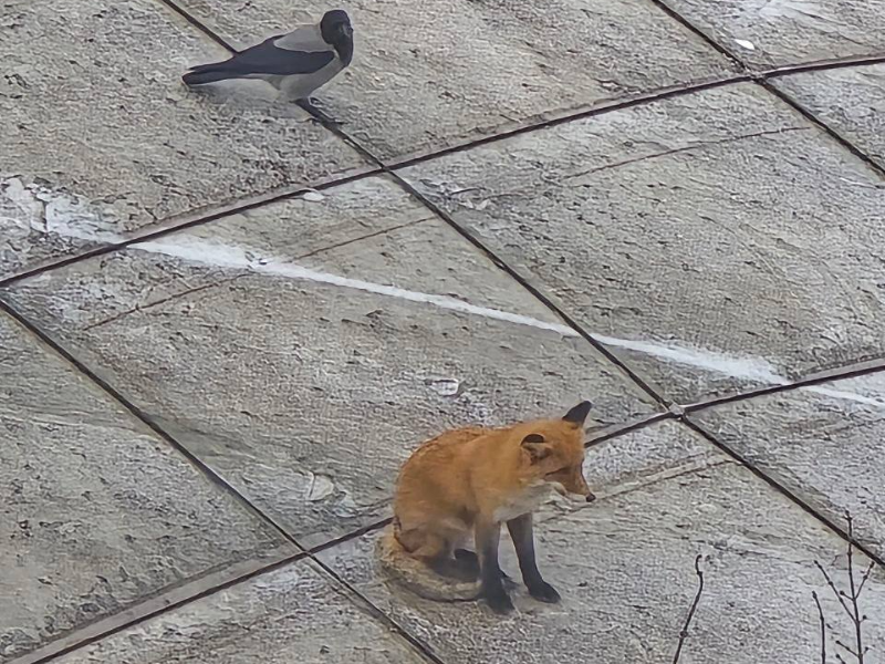 Единственные, кто не переживал за судьбу лисы, так это три вороны, которые бесстрашно вертелись всё время рядом с хищницей.
