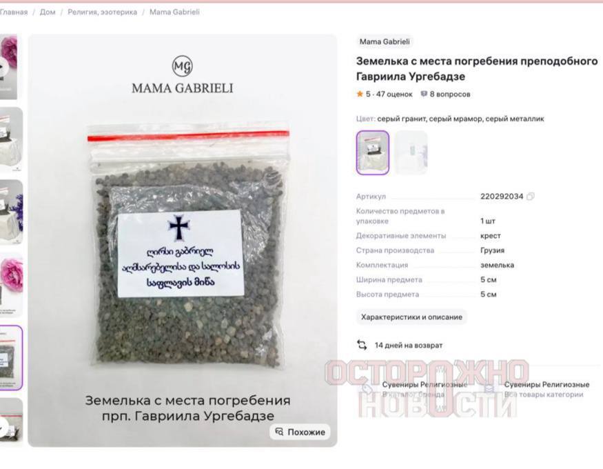 Продавцы предлагали «грудную воду из чудотворного источника от онкологии» за 900 рублей и «земельку с места погребения преподобного Гавриила Ургебадзе» за 300. Наживаясь на отчаянии, дельцы утверждали, что вода из Монастыря Самтавро в Грузии исцеляет от рака и других тяжких недугов, предписывая перед употреблением разбавлять чудо-средство.