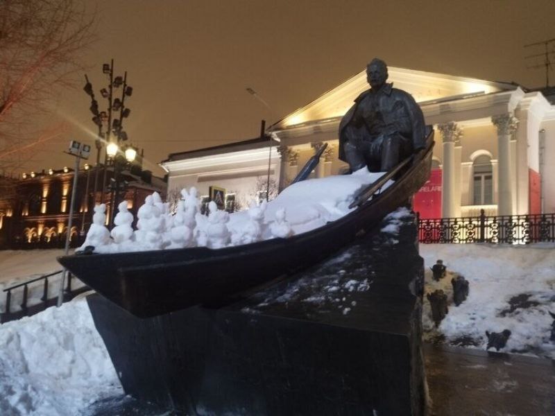 На Гоголевском бульваре в Москве стоит монумент писателю Михаилу Шолохову. Кто бы мог подумать, что именно этот монумент станет объектом для выплеска зимней фантазии.