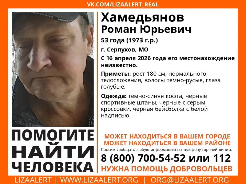 Волонтёры отряда «Лиза Алерт» объявили новый поиск в Подмосковье. На этот раз ищут 53-летнего Романа Х., пропавшего в городском округе Серпухов.