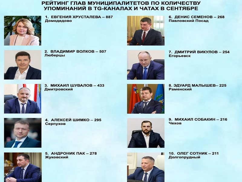 Сентябрь принес значительные изменения в ТОП самых упоминаемых глав муниципалитетов Подмосковья в Telegram-каналах и чатах. Половина лидеров обновилась, демонстрируя динамичность информационного поля.